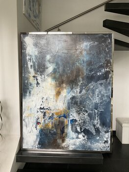 Un amateur d'art, achat effectué en juin 2024: "Averse de bleus", Acrylique sur Toile , 45,7x35in