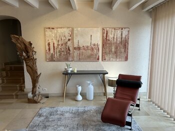 J’ai créé cette œuvre avec une passion profonde, mêlant des couches d’acrylique pour exprimer une atmosphère douce et méditative. Chaque panneau invite à un voyage intérieur, avec ses nuances subtiles qui s’accordent et ses textures délicates. Elle apporte une énergie apaisante et contemporaine, idéale pour transformer un espace en un havre de sérénité élégante et inspirante.