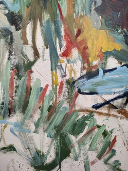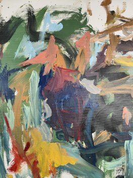Œuvre d'expressionisme abstrait colorée sur fond blanc.