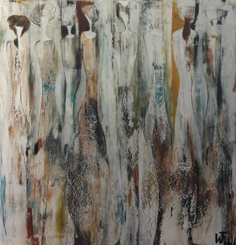 Les dames se rencontrent pour discuter. Leurs corps élancés, leurs robes élégantes, leurs longs cous élancés soulignent leur élégance. Une autre image typique de Friedrich Wurm dans la série "Feine Gesellschaft". Ici, il a utilisé très fortement la spatule, posant plusieurs couches de peinture les unes sur les autres, créant un effet similaire à ce que vous pouvez voir sur un vieux mur qui s'écaille.