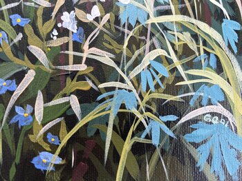 J'ai insufflé toute ma passion pour la nature dans cette œuvre acrylique, capturant la danse joyeuse des fleurs sauvages et des herbes sous un ciel serein. Mon but était de saisir le mouvement délicat et l'énergie vibrante d'une prairie estivale, vous invitant à ressentir sa quiétude et son harmonie naturelle. Cette peinture apporte une bouffée de fraîcheur et de vitalité joyeuse à tout espace qu'elle occupe.