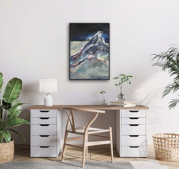 Dans mon travail, je capture la puissance brute et imparable de la nature. Les traits dynamiques et puissants et les contrastes audacieux de l'acrylique reflètent l'imprévisibilité et la majesté du paysage alpin. À chaque coup de pinceau, je cherche à capturer l’essence de la profondeur émotionnelle ressentie dans le silence et l’isolement des montagnes. Cette image est destinée à créer une atmosphère d'admiration et de contemplation dans la maison,… rappel quotidien des aspects grandioses et insondables de notre monde.