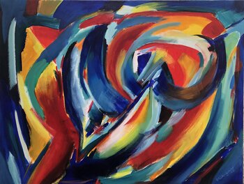 Dans mon travail, j'utilise des couleurs acryliques vibrantes pour obtenir une expression émotionnelle intense. Les formes dynamiques et les couleurs vives se fondent dans une danse d'expressionnisme abstrait et de mysticisme symbolique. Destiné à représenter un reflet des mouvements intérieurs et de la profondeur de notre être, ce tableau encourage la réflexion sur le potentiel énergétique caché qui réside en chacun de nous. Il apportera une énergie… puissante et inspirante à n’importe quelle pièce.