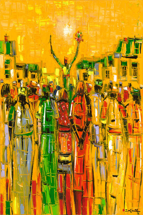 Dans cette œuvre, j'ai mis tout mon cœur à capturer un vibrant moment d'unité et d'espoir. À l'aide de couleurs à l'huile intenses et de coups de pinceau expressifs, j'ai traduit l'énergie vibrante d'une silhouette s'élevant au-dessus de la foule, symbolisant l'aspiration et la force collective. Ce tableau respire la chaleur et l'inspiration, invitant votre espace à vibrer de passion, de connexion et de l'esprit indomptable de la solidarité humaine.