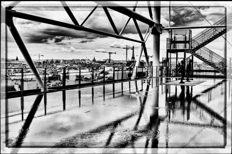 Dans cette œuvre, j'ai souhaité capturer l'énergie vibrante et pourtant immuable de la ville, en jouant avec la lumière, l'ombre et les reflets en noir et blanc. L'architecture devient une scène dynamique, un pont entre réalité et imaginaire, avec une touche urbaine et moderne. Intégrer cette tension visuelle à l'espace lui confère mouvement et profondeur, une invitation à regarder au-delà de la surface.