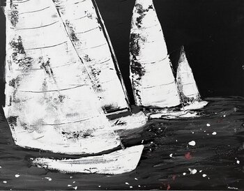 Dans cette oeuvre, j'ai capturé l'essence de la liberté et de l'audace. Les coups de pinceau en acrylique expriment le mouvement tumultueux de l'eau, évoquant à la fois la force et la tranquillité de la mer. Le contraste saisissant entre le noir profond et le blanc pur incarne le dynamisme des voiles au vent. Cette pièce émane une énergie vivifiante, apportant une touche d'inspiration et d'évasion dans toute demeure.