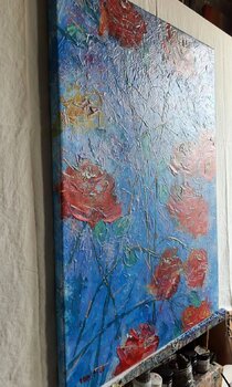 Un amateur d'art, achat effectué en mars 2024: "Yellow Poppies.", Acrylique, Huile sur Toile , 19,7x15,7in