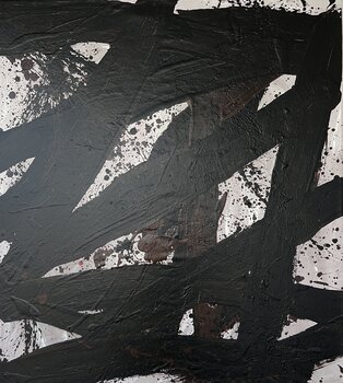 Cette œuvre dégage une énergie audacieuse et stimulante. Sa surface stratifiée invite à la réflexion, tandis que sa puissance gestuelle crée une présence visuelle imposante. J'espère que l'œuvre résonnera émotionnellement chez le spectateur, l'incitant à la contemplation et lui offrant un espace pour que son propre récit intérieur puisse s'épanouir.