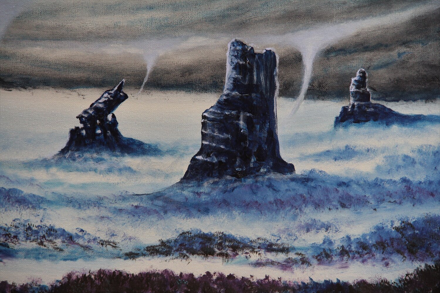 Serguei Borodouline est un artiste russe expérimenté basé au Canada dont les peintures ont été présentées dans des expositions nationales. Travaillant à l'huile et à l'acrylique sur toile, il ne se limite pas à un seul genre artistique et peint tout, des paysages surréalistes aux portraits fantastiques. Son travail se caractérise par une palette de couleurs bleues et violettes et chaque peinture regorge de possibilités imaginatives.