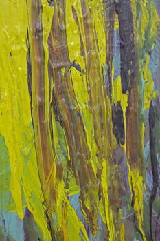 Dans see1141, des traits verticaux jaunes et ocre jaillissent vers le haut, tels des formes revendiquant leur droit à l'existence. La toile met en scène une tension entre flux naturel et immobilité construite, révélant une résistance non comme une confrontation, mais comme une persistance silencieuse.
