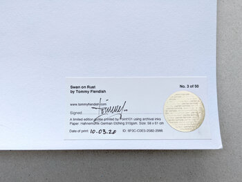Tous les artistes de la plateforme ont été spécialement sélectionnés et certifient ne vendre que des œuvres dont ils sont les auteurs. Quel que soit le support, l'œuvre est envoyée à l'acheteur avec un certificat d'authenticité. Les photographies sont numérotées et signées.
