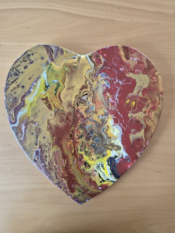 Cette œuvre est une explosion vibrante de couleurs et d'émotions, capturée dans des formes fluides et des contrastes intenses, le tout formant un cœur. J'ai souhaité saisir la vitalité de la vie et l'énergie du cœur, reflétées dans les motifs organiques. Elle apporte une atmosphère chaleureuse et vibrante à toute pièce et vous invite à ressentir la puissance et la beauté de l'instant présent.