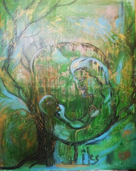 In quest'opera, ho voluto catturare la purezza e la forza simbolica del legame materno. Attraverso tocchi naif e tratti grezzi, ho espresso l'amore protettivo e la fusione tra madre e figlio. Le tonalità del verde e del blu evocano una natura vibrante, un soffio di speranza e rinnovamento che riempirà la vostra casa di un'energia dolce e avvolgente.