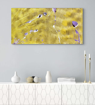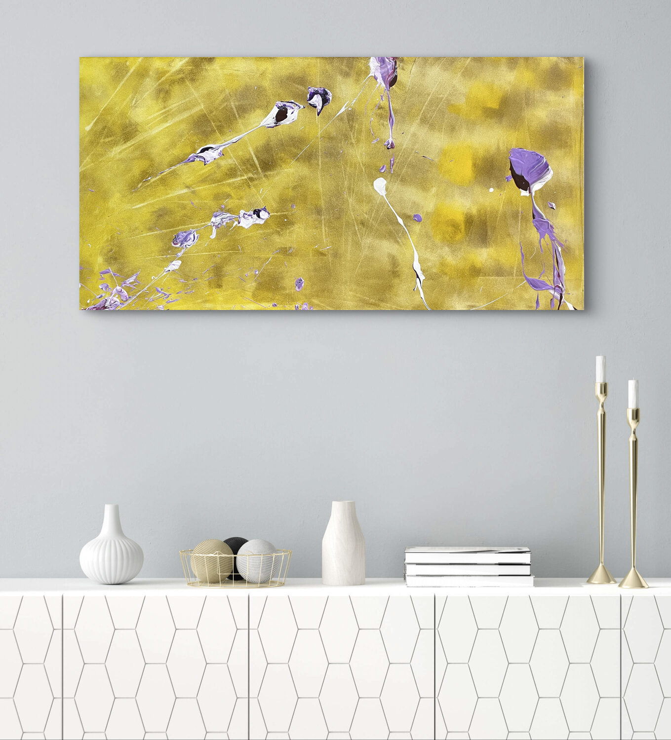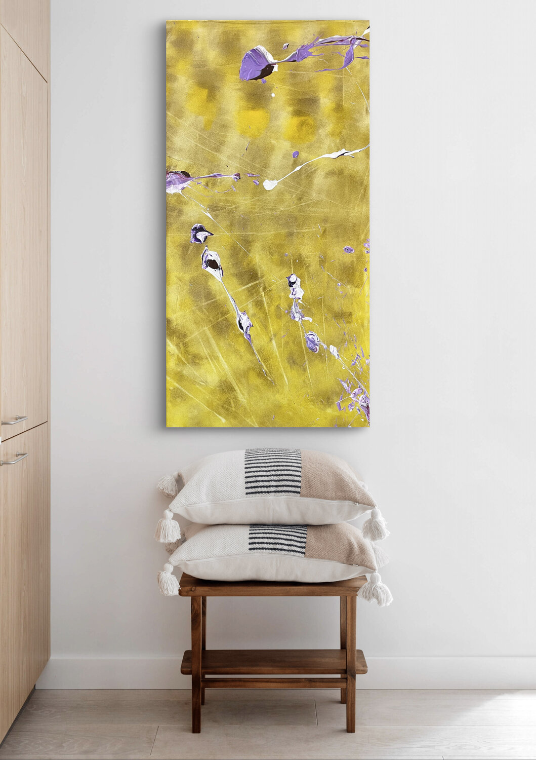 In quest'opera, ho catturato la vivacità del momento con acrilico su tela. Il linguaggio formale astratto, impressionista e minimalista lascia spazio all'emozione e all'interpretazione. I toni giallo oro irradiano calore ed energia, mentre gli accenti viola aggiungono un tocco di mistero e profondità. Questo dipinto porta una vibrante forza di gioia e libertà in ogni ambiente.