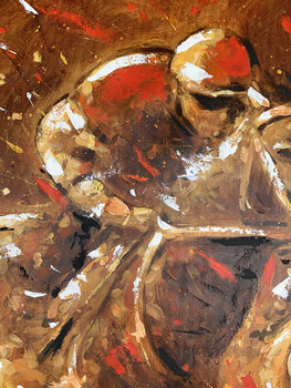 CORSA DI CAVALLI SU OCRA ROSSA è un dipinto che descrive in uno stile ruvido e dinamico il momento di una corsa di cavalli. Fantini e cavalli sono dipinti con il mio stile personale fatto di pennellate potenti ed energiche e colpi di spatola. Amo esprimere la vitalità e lo sforzo della particolare cornice quando la scena si ferma per un momento facendo fluire l'energia dal dipinto. Di tanto in tanto sento il bisogno di alternare dipinti meditativi… e pacati con dipinti forti realizzati con un segno potente. L'opera d'arte è realizzata con colori acrilici e ad olio utilizzando una spatola e anche la tecnica del dripping per migliorare la potenza della scena. E' dipinto su tela non montato ma con almeno 5 cm di bordo tutt'intorno per averlo montato su telaio di legno. La dimensione totale è 125x106 cm. Il dipinto è firmato in basso a destra e come tutti i miei altri dipinti è provvisto di Certificato di Autenticità. Verrà spedito in un tubo protetto impermeabile sicuro.