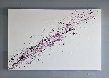 Ho plasmato questa tela con l'entusiasmo dei contrasti, giocando con l'energia dell'irruente smalto e la gravità del catrame. È un'opera dalla natura astratta, che trasmette l'impetuosità delle emozioni in un gioco di schizzi e colori vibranti. Incarna il desiderio di liberazione e la forza del caos ordinato, capace di dare vitalità e movimento a qualsiasi ambiente.