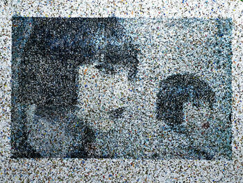 Alessio Mazzarulli trasforma materiali quotidiani in una riflessione sul tempo e sulla percezione. Dopo gli esordi nella modellazione dell’argilla, trasferisce la sensibilità tridimensionale nella pittura materica, dove rilievo e tattilità diventano centrali. Utilizza frammenti di carta di recupero, sottraendo all’oblio tracce della vita comune, e con acrilici e resine “blocca” il tempo in immagini volutamente distorte, composte da elementi frammentari che invitano a una visione d’insieme. Nella serie “Dot Art” impiega piccoli dischi di legno per indagare i vuoti della memoria: gli spazi tra gli elementi evocano ciò che è perduto e spingono l’osservatore a ricostruire l’immagine, creando un dialogo tra realtà e percezione in cui il tempo viene vissuto attraverso erosione e ricomposizione visiva.