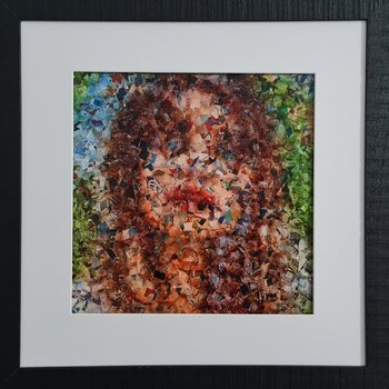 - collage + passepartout + wooden frame: 44,50 x 44,50 cm; thickness 1,20 cm