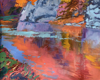 In questo vibrante dipinto a olio, ho catturato l'essenza della tavolozza infuocata dell'autunno. Utilizzando pennellate audaci e impressionistiche e un approccio minimalista, trasmetto la bellezza fugace dell'autunno. I rossi e gli arancioni vividi contro le rocce fredde e spoglie e l'acqua riflettente evocano un senso di calore e tranquillità. Questo pezzo incarna il contrasto emotivo e l'equilibrio naturale, portando un'atmosfera energizzante… ma pacifica in qualsiasi spazio.