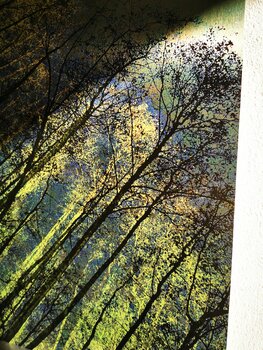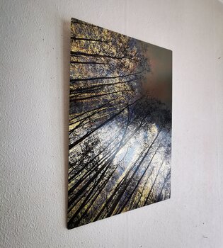 In quest'opera ho voluto ricreare quel momento sospeso in cui la luce dorata di una sera d'autunno si insinua tra gli alberi prima di scomparire come una carezza prima del silenzio.