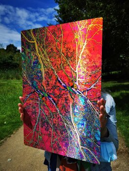 È un'esperienza artistica che fonde colori vivaci e saturi con la bellezza degli alberi.