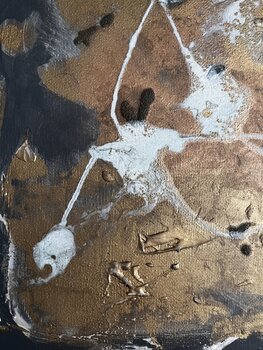 Nel realizzare quest'opera, mi sono immerso nelle viscerali texture delle emozioni, stratificando pittura a gesso, dorature, pigmenti e sabbia per catturare l'eterea danza tra caos e ordine. Quest'opera è un riflesso dell'imprevedibilità della vita, espressa attraverso pennellate spontanee e una ricca tavolozza terrosa punteggiata da lampi dorati. Promette di infondere un'energia dinamica e rinvigorente in qualsiasi spazio, accendendo contemplazione… e meraviglia a ogni vista.