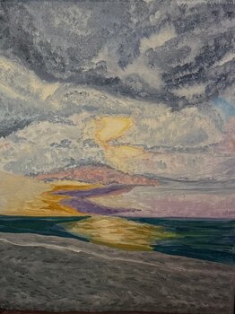 In questo dipinto a olio, ho catturato un cielo surreale che pulsa di energia incontaminata e mistero. Le nuvole sinuose e la luce brillante simboleggiano la danza tra caos e calma, invitando gli spettatori a perdersi nella meraviglia. Quest'opera conferisce un'atmosfera drammatica e onirica a qualsiasi spazio, suscitando emozioni e ispirando momenti di introspezione e stupore.