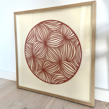 Amalie Bang realizza magistralmente le sue opere d'arte uniche utilizzando carta fatta a mano e un coltello affilato, giungendo a questo mezzo dopo molta sperimentazione. Utilizza il taglio della carta a mano libera, fondendo motivi minimalisti con composizioni cromatiche giocose e audaci, valorizzando sempre pazienza, precisione e qualità dei materiali. Le sue opere irradiano sincerità e vulnerabilità, invitando l'osservatore a immergersi in uno spazio di riflessione sulla bellezza e la complessità delle fasi emotive della vita.