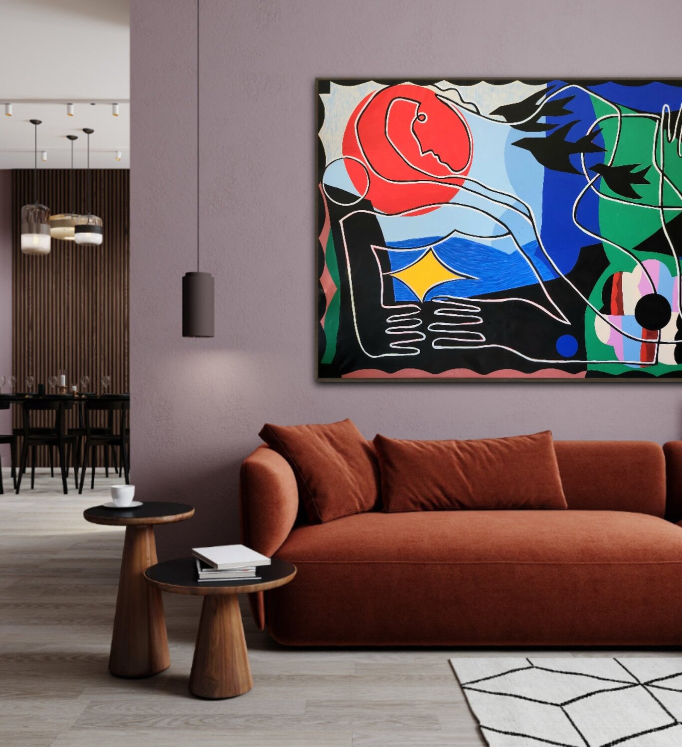Nella serie "About Someone's Mother", ho narrato una gioiosa celebrazione del flusso costante della vita all'interno di un vibrante mosaico di colori e forme, creando. Usando acrilici, tempera e pastelli a olio, ho mescolato forme astratte, elementi cubisti, tonalità fauviste, primitivismo grezzo e narrazioni semi-astratte per creare un inno visivo alla complessità e all'interconnessione delle nostre esperienze. Questo pezzo invita alla riflessione… e alla gioia, infondendo ogni spazio con un'energia vivace e ricordandoci l'eterna danza tra il nostro passato e il momento presente.