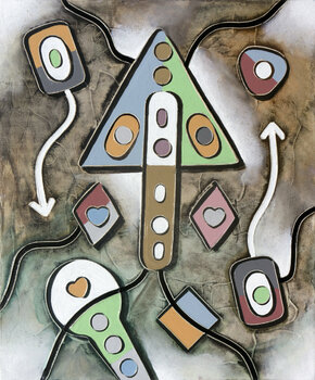 Questa opera è un viaggio emotivo entro forme geometriche e simboli primordiali. L'olio, l'incisione e i pigmenti si fondono in un'armonia di colori e linee che toccano l'anima dell'osservatore. È un inno alla nostra eredità collettiva, un richiamo alle radici comuni che ci legano in una danza visiva ipnotica. Ogni forma è un battito cardiaco, ogni pennellata racconta la nostra storia.
