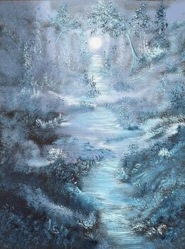 In questo dipinto, ho unito visioni futuristiche a meraviglia metafisica, usando pennellate impressioniste per catturare una foresta eterea immersa nella luce della luna. I toni blu-argentati evocano un mistero sereno, invitando a perdersi nella sua silenziosa magia. Collocare questo dipinto nel vostro spazio porterà un'energia calmante e un tocco di bellezza ultraterrena, ispirando riflessioni e sogni oltre l'ordinario.