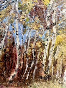 In questo dipinto ho catturato l'atmosfera vibrante di un bosco autunnale, quasi dando vita agli alberi. Utilizzando colori a olio e pennellate impressioniste, ho voluto rendere palpabile il gioco di luci e ombre sulla corteccia e il fruscio delle foglie. Quest'opera porta l'energia naturale e la tranquillità della natura direttamente nella vostra casa, permettendovi di respirare profondamente e di sentirvi in sintonia.