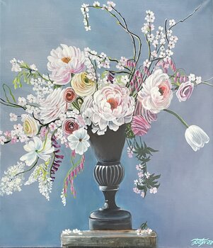 Nel creare questo pezzo, ho cercato di catturare la bellezza eterea di una composizione floreale senza tempo. Ogni pennellata del mio pennello a olio dà vita alle delicate texture di petali e foglie, su uno sfondo morbido e sereno. Attraverso il realismo, ho mirato non solo a raffigurare i fiori, ma a evocare un senso di tranquillità e grazia. Questo dipinto è un invito a fermarsi e a godere della squisita arte della natura, portando un soffio di… calma e ispirazione in qualsiasi spazio.