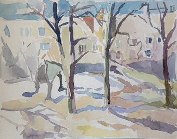 In quest'opera, ho catturato la fragile e tranquilla bellezza dell'inizio primavera attraverso delicate velature di acquerello. Gli alberi spogli si ergono pazientemente mentre la luce danza sul cortile, evocando un dolce risveglio. Utilizzando elementi espressionisti e impressionisti, ho cercato di trasmettere le emozioni di speranza e rinnovamento. Quest'opera invita alla calma e alla riflessione, portando un'energia serena e rigenerante in qualsiasi… spazio in cui venga collocata.