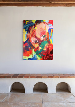 Questi ritratti espressivi oscillano tra figurazione e astrazione. I volti emergono da pennellate rapide e gestuali, rimanendo aperti e ambigui allo stesso tempo. Occhi, bocca e mani appaiono come istantanee di stati d'animo, oscillando tra malinconia, ironia e silenziosa osservazione.