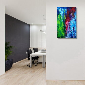 Nota bene: le immagini contestualizzate sono a scopo illustrativo e non mostrano necessariamente l'opera in scala. Consulta la sezione dedicata alle dimensioni per le dimensioni effettive del dipinto. Se desideri vedere come apparirebbe questo dipinto sulla tua parete, inviami una foto della parete/stanza e potrò applicarla con Photoshop.