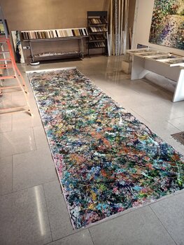 Antonino Puliafico’s "Primordial Energy" is a monumental exploration of chaos, color, and movement. Spanning an impressive scale, this abstract masterpiece captures the raw and unfiltered essence of creation. The intricate layers of enamel paint applied with dynamic gestures create a dense, textured surface that seems to pulsate with life.… The vibrant interplay of colors—ranging from deep earth tones to electric blues, fiery reds, and bright yellows—draws the viewer into a universe teeming with energy and emotion.
