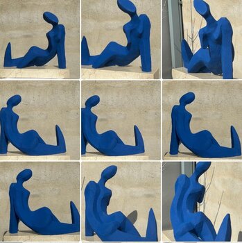 La scultura funziona come sintesi tra disegno e volume: è una linea… trasformata in corpo. Il blu non descrive; unifica. La forma non narra; suggerisce.