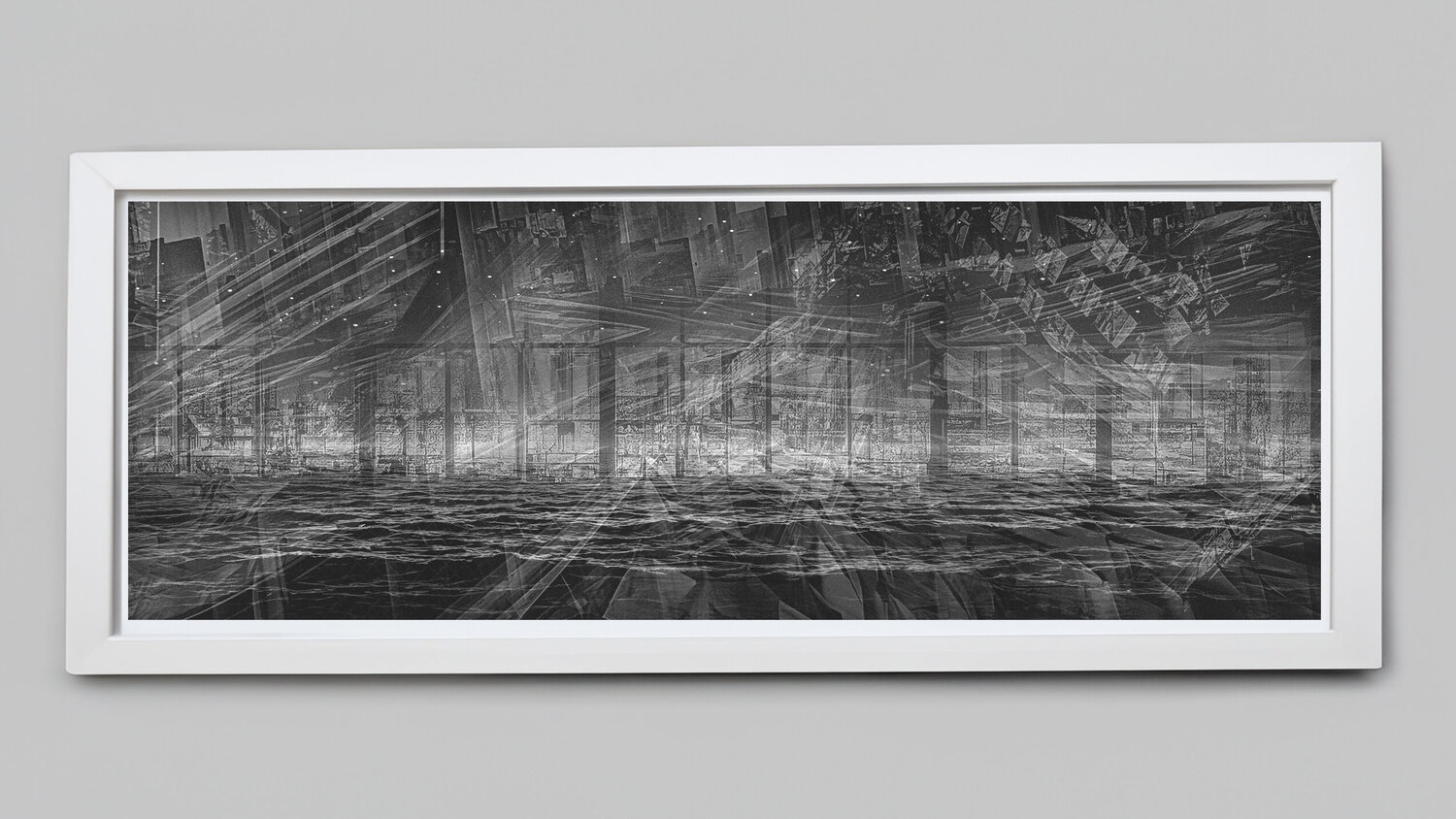 Queste composizioni panoramiche immaginano le città lentamente sommerse dalle maree crescenti, offrendo una meditazione onirica sulla fragilità dell'essere umano. Attraverso texture stratificate, sottili distorsioni e ampie dimensioni, le opere d'arte trasformano spazi urbani familiari in mutevoli panorami sottomarini. Gli edifici sfumano in sagome spettrali e riflessi increspati evocano ricordi dell'ambizione umana che si dissolve nell'incertezza.… Ogni panorama sembra sia una documentazione che una profezia, catturando l'attimo prima della scomparsa e interrogando al contempo il nostro ruolo collettivo nel declino ambientale. Il grande formato incoraggia gli spettatori a muoversi attraverso la scena, riecheggiando la sensazione di guadare strade allagate. I colori si ammorbidiscono, le prospettive si frantumano e il confine tra cielo e mare si confonde, creando una quieta bellezza nella perdita. La luce rifratta attraverso l'acqua diventa una metafora di rinnovamento e della possibilità di percepire il mondo in modo diverso dopo una catastrofe. Queste città allagate, reinventate come...