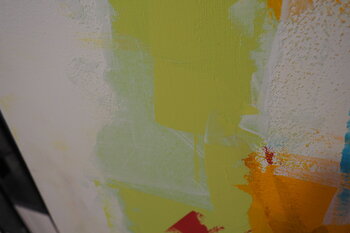 In quest'opera utilizzo acrilici e colori spray per esplorare un vibrante dialogo di colori e forme. Ogni pennellata e schizzo simboleggia le emozioni effervescenti e il dinamismo che desidero trasmettere. Questo dipinto è una testimonianza di passione ed energia, pensato per infondere uno spirito vivace e stimolante in qualsiasi spazio, riempiendolo di ispirazione e gioia. Il trittico è composto da tre tele: 1 (100x73) + 2 (100x50) = 100x173 cm.