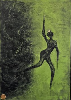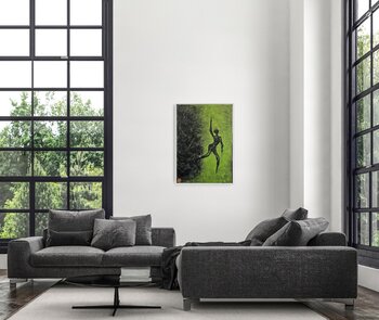 Ciò che rende speciale "FEEL FREE" è la sua composizione unica, divisa in due metà di colore. Da un lato dominano i toni scuri e profondi, simboleggiando stabilità e serenità, mentre l'altro lato risplende di un verde vibrante, incarnando la freschezza della vita.… In un ipnotico momento di movimento, una ballerina salta dall'area scura al verde, un meraviglioso simbolo di cambiamento, gioia e ricerca della libertà.