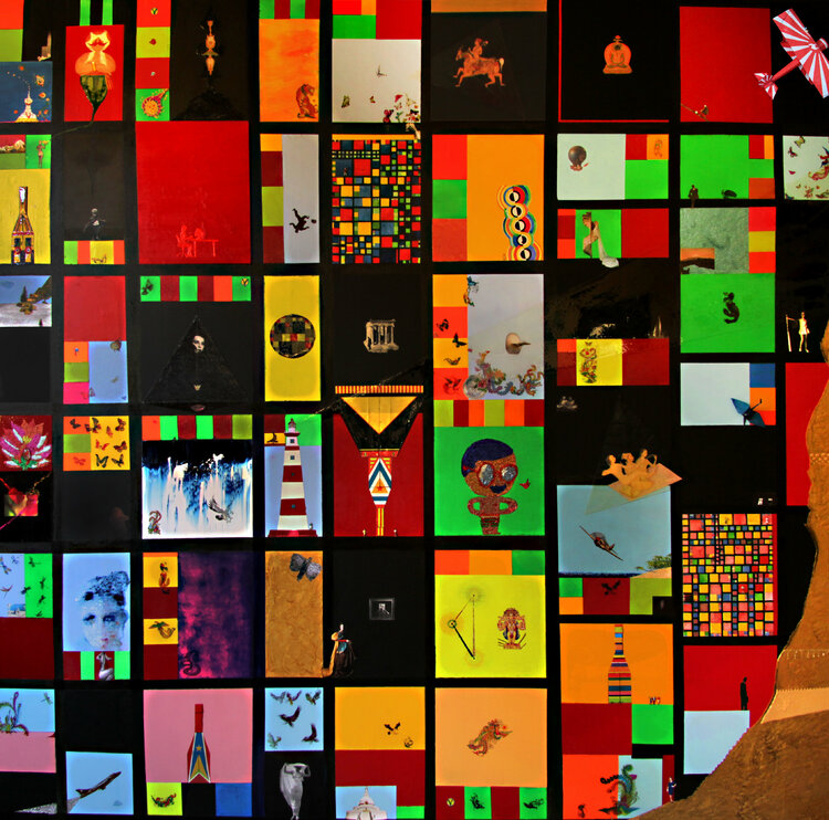 Quest'opera è un arazzo di emozioni e simboli, dove ogni dipinto è una storia, un frammento di sogni e realtà. Ho usato acrilici, oli e tecniche miste per dare vita a questo mosaico di pop art ed elementi simbolici, intrecciando il figurativo con il metafisico. Ogni pezzo vibra di un'energia unica, invitando lo spettatore a un'esplorazione personale. Quando lo contemplerai nella tua casa, sentirai un'esplosione di colore e significato che arricchirà… il tuo spazio con un dinamismo perpetuo.