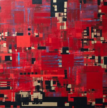 In quest'opera, ho esplorato le emozioni più crude della passione e del conflitto, utilizzando una tavolozza vibrante dominata dal cremisi e accentuata da accenni di foglia d'oro. L'interazione di colori e il caos strutturato attingono all'astratto, al cubismo e all'espressionismo, con l'obiettivo di evocare un senso di tensione dinamica e risoluzione. Ogni pennellata e ogni schizzo di colore sono una testimonianza dei dialoghi infuocati che definiscono… le relazioni umane e le battaglie personali. Quest'opera d'arte non è pensata solo per essere ammirata; è un spunto di conversazione, progettato per portare energia e un'affermazione audace in qualsiasi spazio.