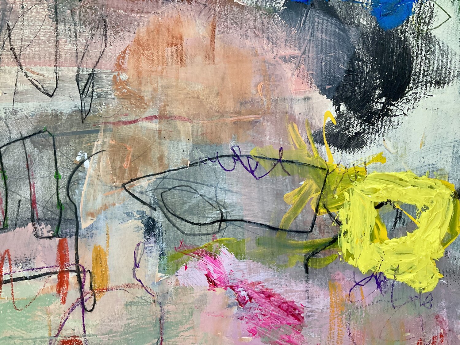 In quest'opera, ho riversato emozioni pure attraverso strati di acrilico, carboncino e lana, fondendo l'espressionismo con forme astratte e geometriche. Le linee energiche e gli schizzi vibranti rivelano un'armonia caotica, sussurrando storie inespresse. Portare questo nella vostra casa infonde allo spazio una tensione vibrante e uno spirito giocoso, invitando a una curiosità infinita e a una risonanza emotiva.