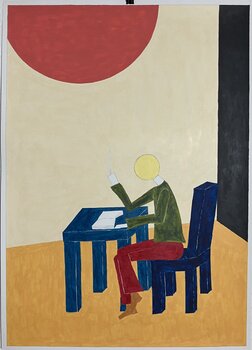 La pittura come dipendenza e desiderio. Ho costantemente immagini in testa e sento il bisogno di dipingerle per vederle, per capire se le mie idee e i miei concetti funzionano nella realtà, o quali problemi e interrogativi sollevano una volta rappresentati graficamente. Sono pensieri in forma pittorica. Si presentano nella loro struttura colorata e planimetrica, e la necessità di dipingerle assomiglia all'impulso filosofico di ricercare incondizionatamente la verità. Come un cane da caccia.