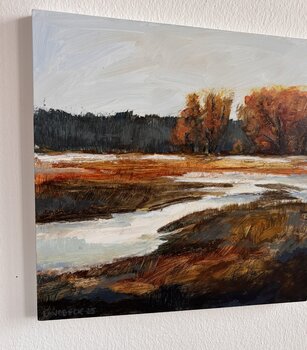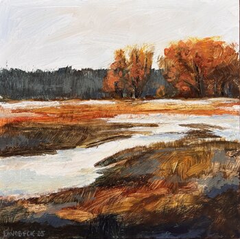 Ho dipinto quest'opera dopo una lunga passeggiata novembre, durante la quale ho raccolto numerose impressioni e le ho immortalate fotograficamente. Nel mio studio, ho tradotto queste osservazioni in uno studio mirato di colori e forme. Sono affascinato dalla calda tavolozza di questa stagione: la silenziosa transizione tra autunno, inverno e primavera, in cui sono palpabili sia il decadimento che l'acquisizione di nuova forza.