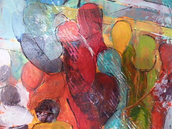 Ispirato dalla vita sulle rive del Gange. Pellegrini che salgono le scale (ghat) sulle rive del Gange a Varanasi, Benares. Molto colorato e vivace, un dinamismo incredibile e gioioso, anche se i defunti non sono lontani.