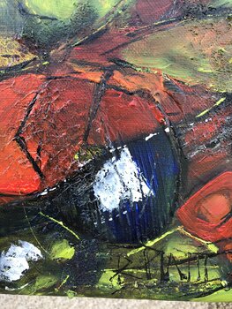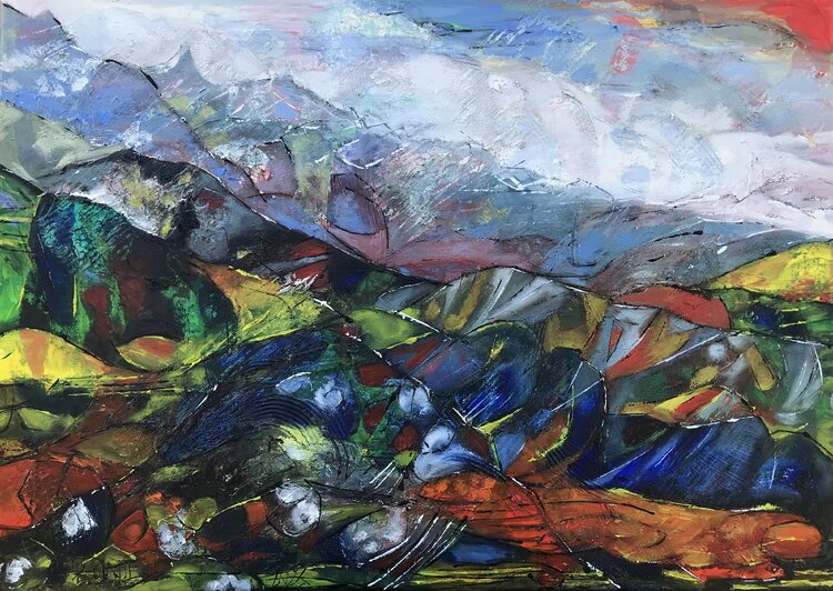 In questo dipinto ho evocato la passione degli elementi naturali, mescolando olio e sabbia per una texture viva che riecheggia i rilievi alpini. È un'esplosione di colori, che riflette luci e ombre, la forza della natura. Ogni pennellata è un'emozione cruda, per portare lo spettatore in una danza tra l'astrazione e la suggestione dei paesaggi. Quest'opera infonderà energia accattivante in ogni casa, invitandoti a fuggire.