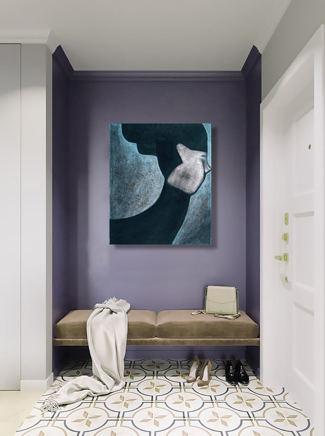 Nell'abbraccio della mia tela, ho fuso acrilico, pastello e tempera per respirare vita in una visione surreale dove il figurativo incontra il simbolico. L'essenza metafisica permea ciascuna pennellata, mentre infondo un senso di mistero ed emozione attraverso volti evanescenti, catturando lo sguardo in un viaggio al confine del sogno. Questa opera vibrerà nelle vostre case, suscitando interrogativi e un dialogo interiore senza tempo.