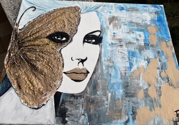 In quest'opera, ho catturato con passione il fragile ma potente momento della trasformazione. L'ala dorata della farfalla che si fonde con il volto della donna simboleggia la rinascita e la metamorfosi. Attraverso audaci pennellate espressioniste e contrasti surreali, vi invito a percepire la misteriosa energia del cambiamento. Quest'opera d'arte porterà un'atmosfera dinamica e stimolante in qualsiasi spazio, ricordandovi che la bellezza emerge attraverso… la crescita e l'evoluzione.